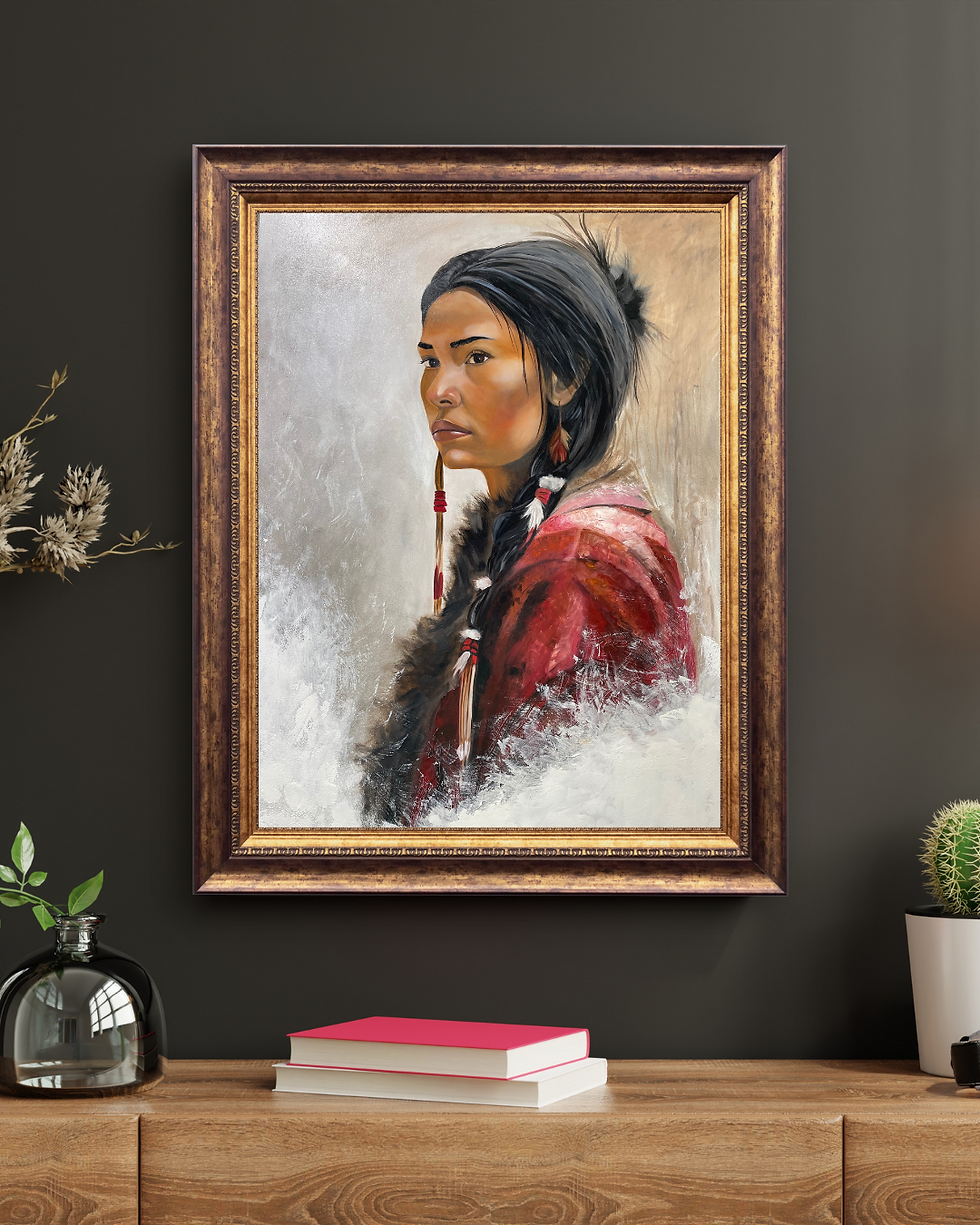 These aren't just paintings to me. They're conversations with souls. Each painting I create carries the weight of lived experience, whether it's capturing the resolve in a young woman's gaze beneath her wide-brimmed hat, or honoring the fierce pride and ancient wisdom reflected in traditional regalia. My brushwork doesn't just capture features. It captures the essence of people who've weathered life's storms and emerged with their spirits intact.